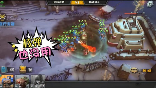 视频里进行了两次的对战,可以看出,人类流打竞技实在是打得很快,低费人类咻咻咻地放出去后,再加上几层buff,空袭炸过来一个都炸不死,奶一奶又是满血出击。三层强心剂减支援类伤害120%,炸弹你随便放,我掉血算你赢!在第二场的竞技里,连核弹都炸不掉血,对手生无可恋地投降了。