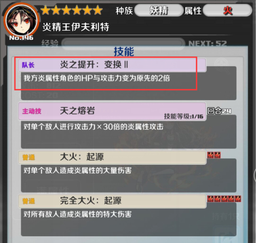 上图是指定条件进行属性提升的队长技,此类指定属性或种族进行属性提升的队长技为众多队长技中的一种。假设队伍中所有成员都满足上图中队长技所需条件(全员炎属性),所有成员的血量以及攻击力都将翻倍!对于攻坚来说,这无疑将是巨大的提升。选择完队长后,只需挑选满足队长技条件的合适成员,即可让全队享有加成效果!