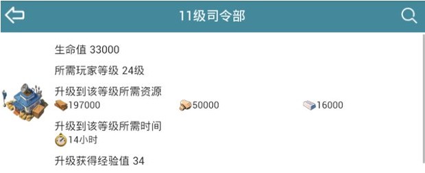 海岛奇兵十一级司令部详细数据