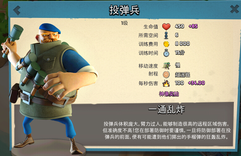 投弹兵:一种臂力过人,能够造成很高的远程区域伤害,但准确度不高的新兵种。(司令部达到16级时解锁)