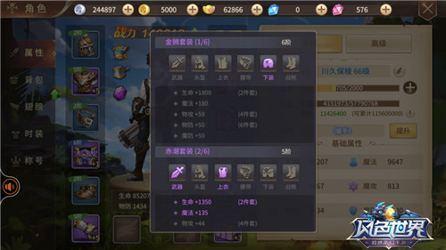 2件套的5阶赤潮套装,能带来生命+1800,魔法+135的提升,4件套再叠加物攻+44,,助力勇者在执行任务和各类打本中,游刃有余!