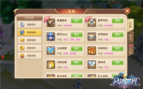 要凑齐一套套装,并不难,点击游戏里的【宝典】,选择【我要装备】你就知道获得装备的所有途径啦!