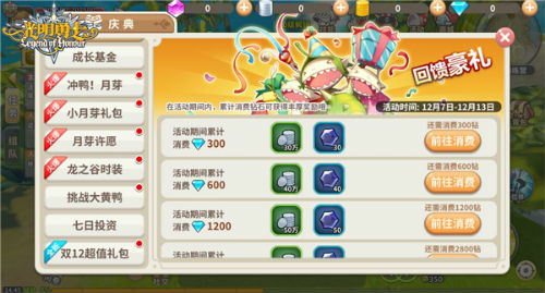 一年一度的双十二即将来临!而盛大游戏首款3D萌系超自由冒险手游《光明勇士》也将同时开启“你消耗我送礼”双十二系列活动!在活动期间,各位萌主消耗指定数量的钻石,就可获