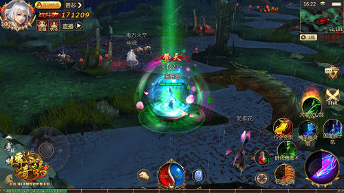桃花同叶片齐飞、交织着薄薄的绿色与桃色光影,再加上从脚底缓缓荡漾开的绿色细纹,天人级治愈术不同于攻击技能所散发出的磅礴气势,而显得更具视觉美感。同样,天人级的金刚护体也极具明艳效果,各式符文像是图腾般浮现在半空中和地上,十分的赏心悦目。