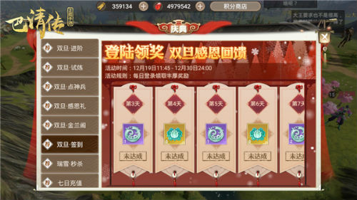 “双旦同庆迎凛冬,圣诞庆典拿豪礼” 由盛大游戏、心光流美联合发行的开放式3D手游《巴清传》即将开启双旦庆典活动。参与双旦庆典,不仅能获取多种珍稀游戏道具,更有绚丽的全