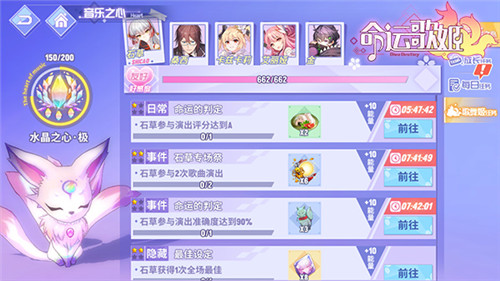 《命运歌姬》中每个歌舞姬都有自己的专属记忆剧情,作为连接者必须努力收集记忆碎片,方可逐步揭开歌舞姬的昔日记忆。玩家可在每日任务中查看歌舞姬任务,完成挑战即可获得碎片。想要获得更多碎片,还可以向歌舞姬赠送他们心仪的礼物,好感度提升的同时还能触发新的歌舞姬事件。收集到的记忆碎片将被灌注进歌舞姬的记忆水晶中,帮助他们一点一点唤醒过去的记忆,完成最终的真实自我觉醒。