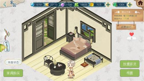 完成了一天的劳作和冒险,不论是茶灵还是玩家都需要得到良好的休息,家园系统就是茶灵们合适的休憩之所。当茶灵的茗香值下降到清冽,茶灵属性也会随着疲惫有所降低,无法发挥最大能力,这时就需要茶灵通过休息回复茗香值。玩家可以将需要休息的茶灵放置在家园中,进行休息。同时玩家还可以自由的对家园进行布置,从家具的购买到摆放,甚至还有家园的风格大小都可以自行解锁设计,舒适的环境可以加快茶灵茗香回复速度。