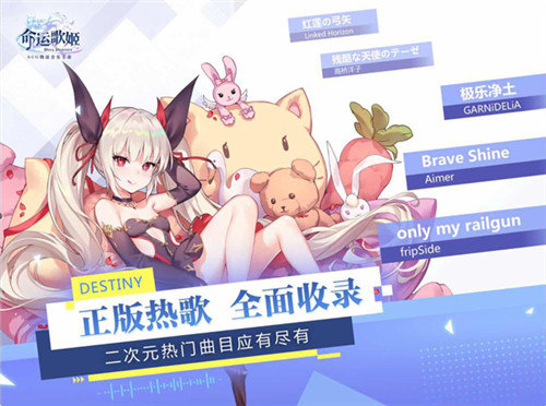 作为一款二次元音舞手游,《命运歌姬》的核心亮点必然是在ACG音乐上。为了让玩家有更好的游戏体验,官方已经将一众ACG神曲全部收录进游戏当中。其中就有一度血洗A、B两站的《极乐净土》、《桃园恋歌》,还有让人记忆深刻的经典动漫主题曲《恋爱循环》《残酷天使的行动纲领》,以及各路V家大触级的调校作品《神的随波逐流》《病名为爱》等超人气ACG歌曲。无论身处何地,都能让你找到最爱的旋律,时刻沉浸在这片充满音乐魔力的领域中。
