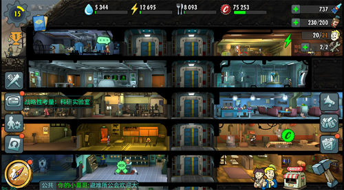 首先,监督者进入避难所后,首要进行的就是需要获取资源以建设避难所。建造各类资源生产房间并对房间进行升级,提高产出效率,每天还有三次免费加速机会要用足哦。安排合适的城建居民在对应的房间进行生产,也是一个不错的选择。