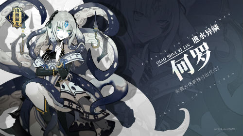 《山海镜花》中的何罗是生于谯水的鱼妖少女,而因为她带着暗色触手模样,自小就被谯水中的其他鱼类小伙伴们以及周围的居民们排斥。成长中的磨难让她的触手锻炼得格外强壮,颜色也愈发乌亮。她那双碧绿的眼眸依旧如深海中的明玉般分外纯洁透亮,但却不得不被用于透露凶光,威慑着所有人,给人的感觉相当难以接近。
