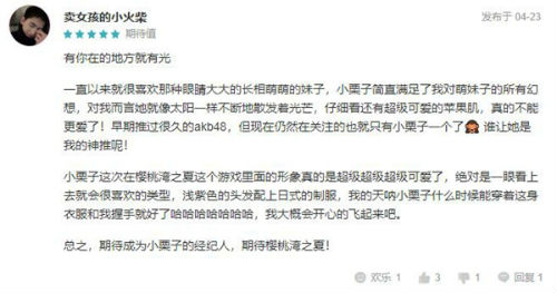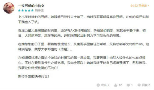 我们从各渠道的情况来看,《AKB48樱桃湾之夏》的口碑还是很不错的,玩家的期待热情也很高。目前官方预约已经突破了10万,随着国内偶像养成文化的兴起,相信《AKB48樱桃湾之夏》未来会有不俗的表现,小编也希望国服的研发和运营团队能够一如既往,继续保持和粉丝互动,真正为大家奉献一款优秀的偶像养成佳作。